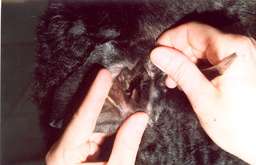 Op deze manier houdt u meteen de kop van uw hond zo stil mogelijk. Zorg dat u goed licht cq zicht heeft zodat u niet het zeer gevoelige oor van uw hond kan beschadigen. Strooi wat krijt (met mate) dit heeft als functie dat u op het toch altijd vette haar wat meer grip verkrijgt. Nu gaat u met de oorpincet/arterieklem of gewoon met duim en wijsvinger voorzichtig de haartjes uit de oren trekken. Doe dit met korte stevige rukjes, dat is het minst vervelend voor uw hond.